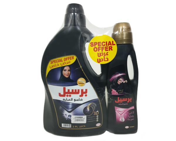 شامبو العباية 2*1 من برسيل حماية اللون الداكن أثناء الغسيل ونعومة عباءاتك بالإضافة إلى رائحة لطيفة تدوم طويلاً