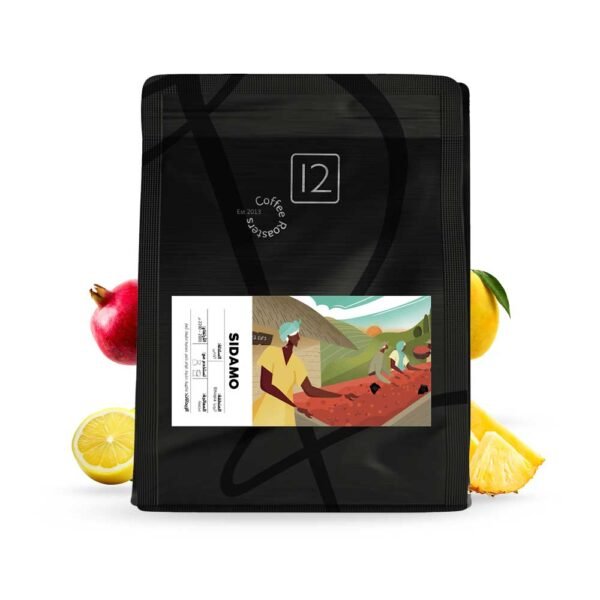 حبوب قهوة إثيوبيا سيدامو محمصة، مزيج إثيوبي رائع مع لمسات من الكراميل والتوت، تجربة مميزة لعشاق القهوة المختصة، متاحة بعبوة 12 كوب * 250 جرام.