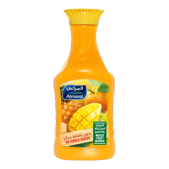 عصير الفواكه المشكلة والمانجو من المراعي يقدم لك مزيجاً لذيذاً من الفواكه الطبيعية مع طعم المنغو الرائع، خالي من السكر. العبوة بحجم 1.4 لتر.