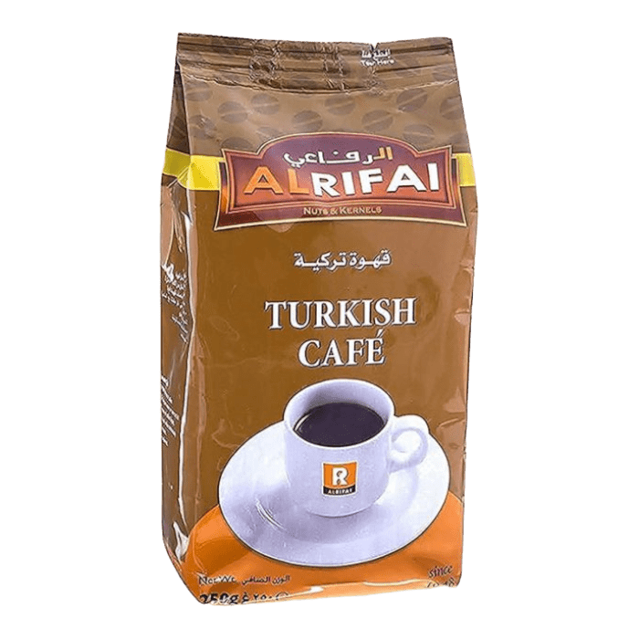قهوة الرفاعي تركية برازيلية – مزيج رائع من القهوة التركية والبرازيلية، تمنحك نكهة فريدة ومتوازنة، متاحة في عبوة 1 كيلو جرام.