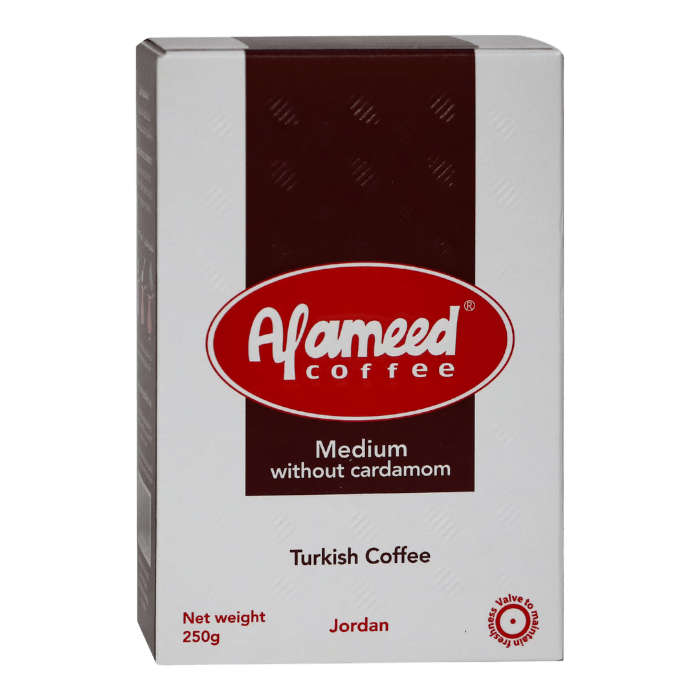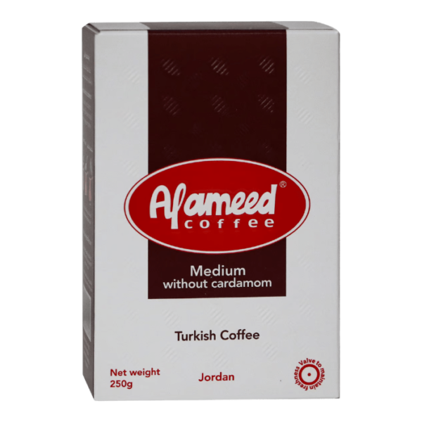قهوة العميد تركية وسط بدون هيل – قهوة تركية وسط بدرجة تحميص متوسطة، تمنحك مذاقًا غنيًا بدون هيل، متوفرة في عبوة 250 جرام.