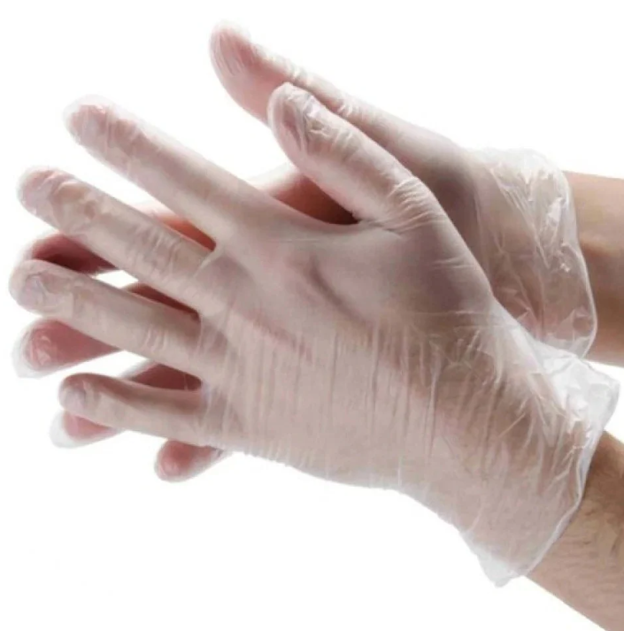كفوف شفاف متوسطة الحجم توفر حماية مرنة أثناء استخدام مواد التنظيف.