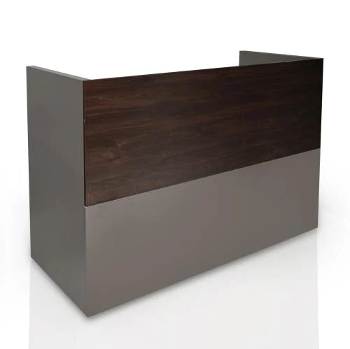 - كاونتر استقبال بني فخم مع تصميم مميز يجمع بين اللمسات الكلاسيكية والعصرية، ليضيف لمسة من الفخامة والتميز لمساحة العمل.