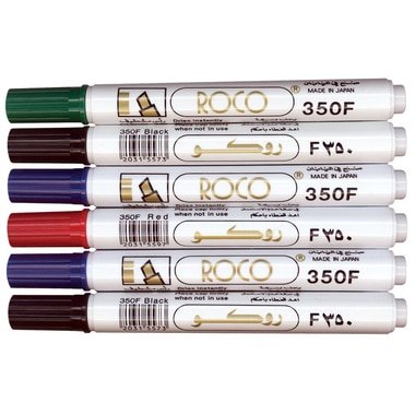 طقم أقلام روكو ماركر 350 ثابت الوان متعددة 6 الوان اسود – ازرق – احمر – اخضر