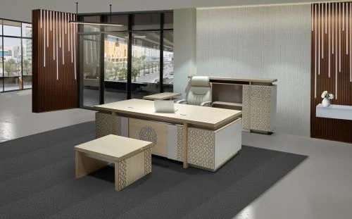 - طقم متكاملة يحتوي على طاولة مكتبية لإتمام مهام العمل، وطاولة شاي لتلبية الاحتياجات اليومية لاستقبال العملاء والزوار، ودولاب مكتبي يُمكن تخزين الأدوات والملفات فيه للحفاظ على شكل الغرفة منظم أطول وقت ممكن.