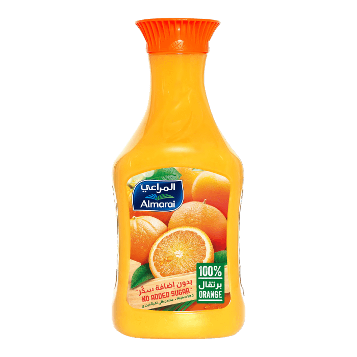 عصير البرتقال من المراعي يتمتع بمذاق طبيعي منعش من البرتقال الطازج، دون إضافة أي سكريات مضافة. العبوة بحجم 1.4 لتر.